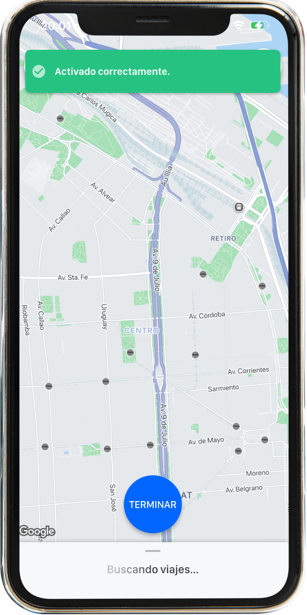 Una vez que solicitás el servicio, podés hacer el seguimiento en tiempo real desde la app y ver el estado del conductor hasta su llegada.